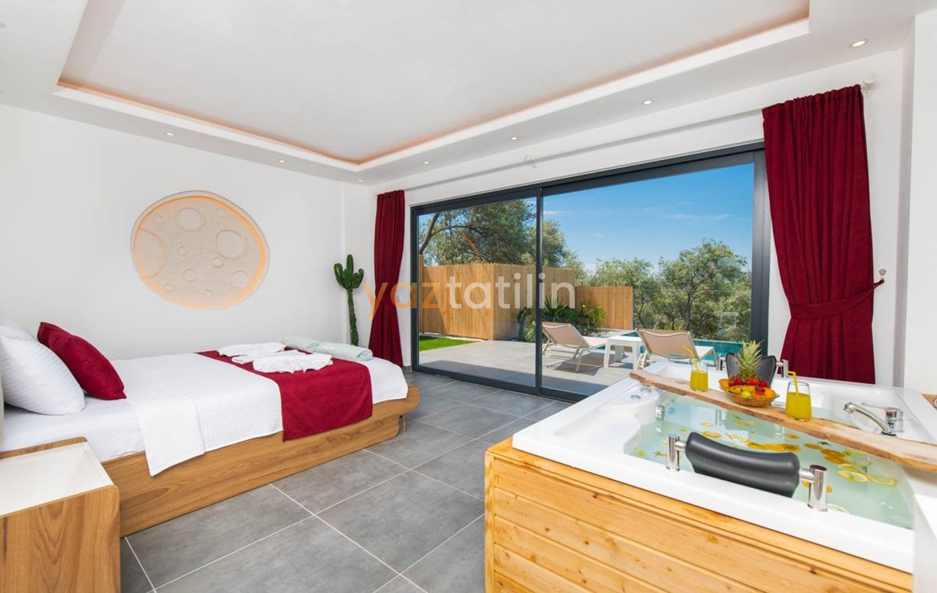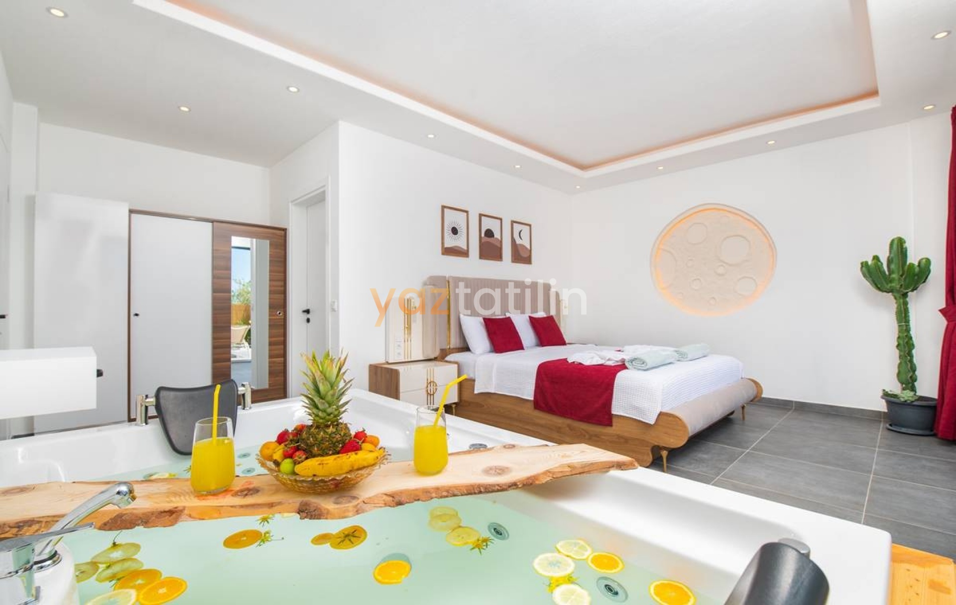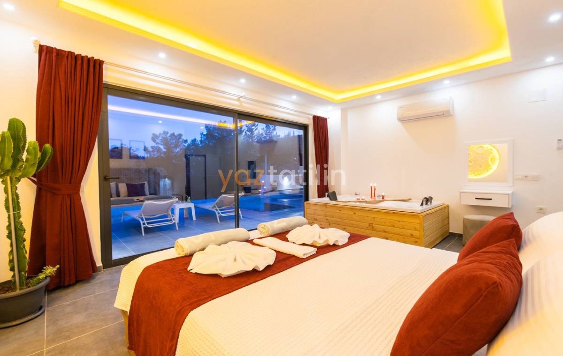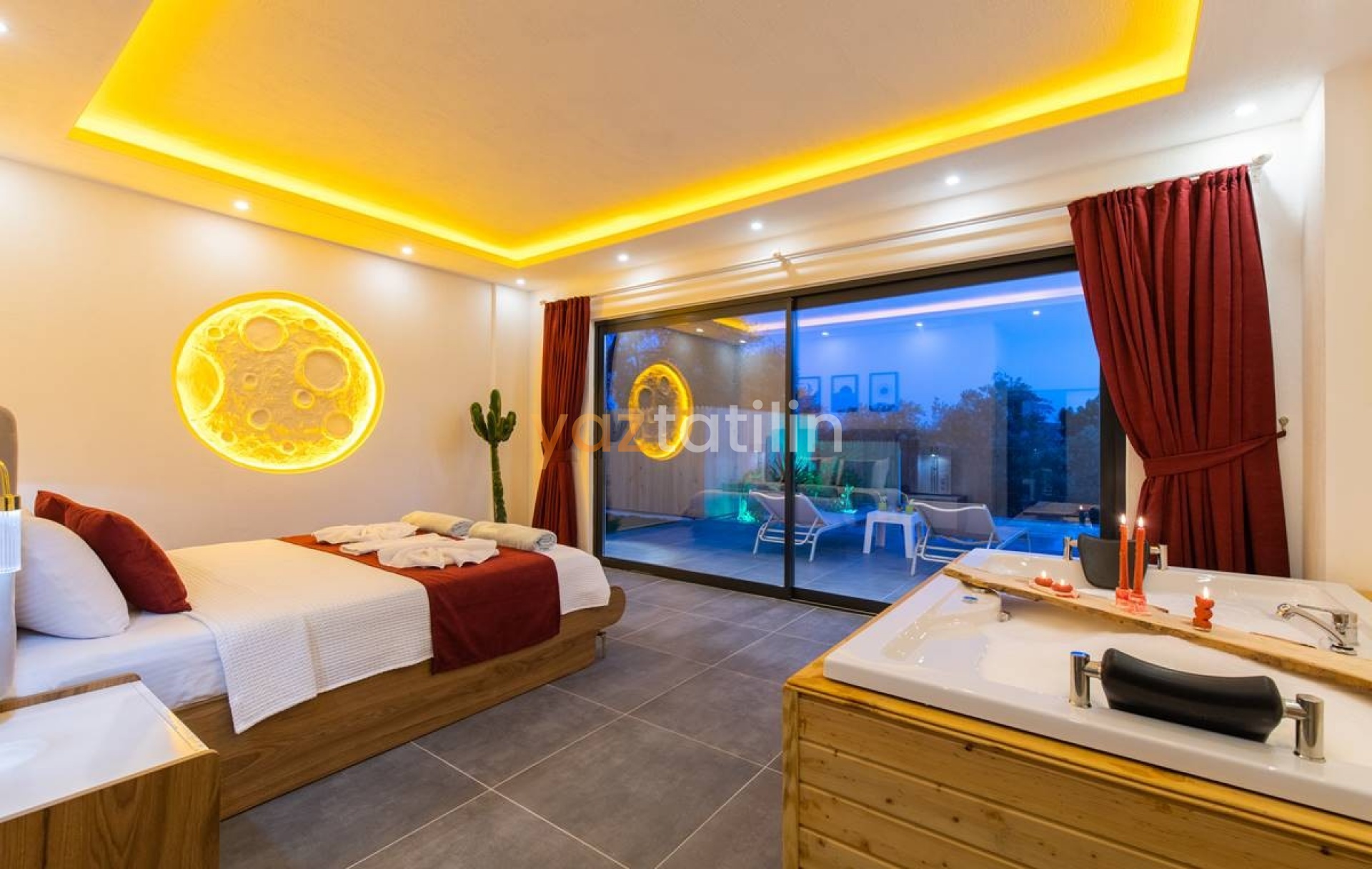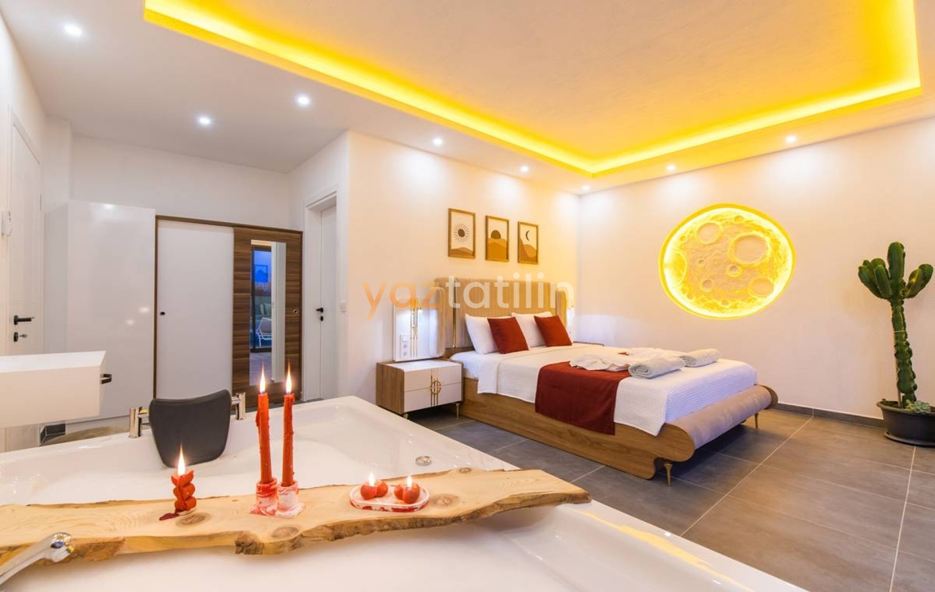 Villa Littabal, Kalkan'ın Üzümlü mevkiinde yer almaktadır. 1 suit yatak odası ile 2 kişilik kapasite sağlamaktadır. Yatak odasında bulunan jakuzi ile yılın yorgunluğunu atabilir sonsuzluk havuzunda tatilinizin keyfini çıkarabilirsiniz. Doğa ile iç içe konumu sayesinde huzurlu bir tatil geçirme fırsatı sunan balayı villasıdır.