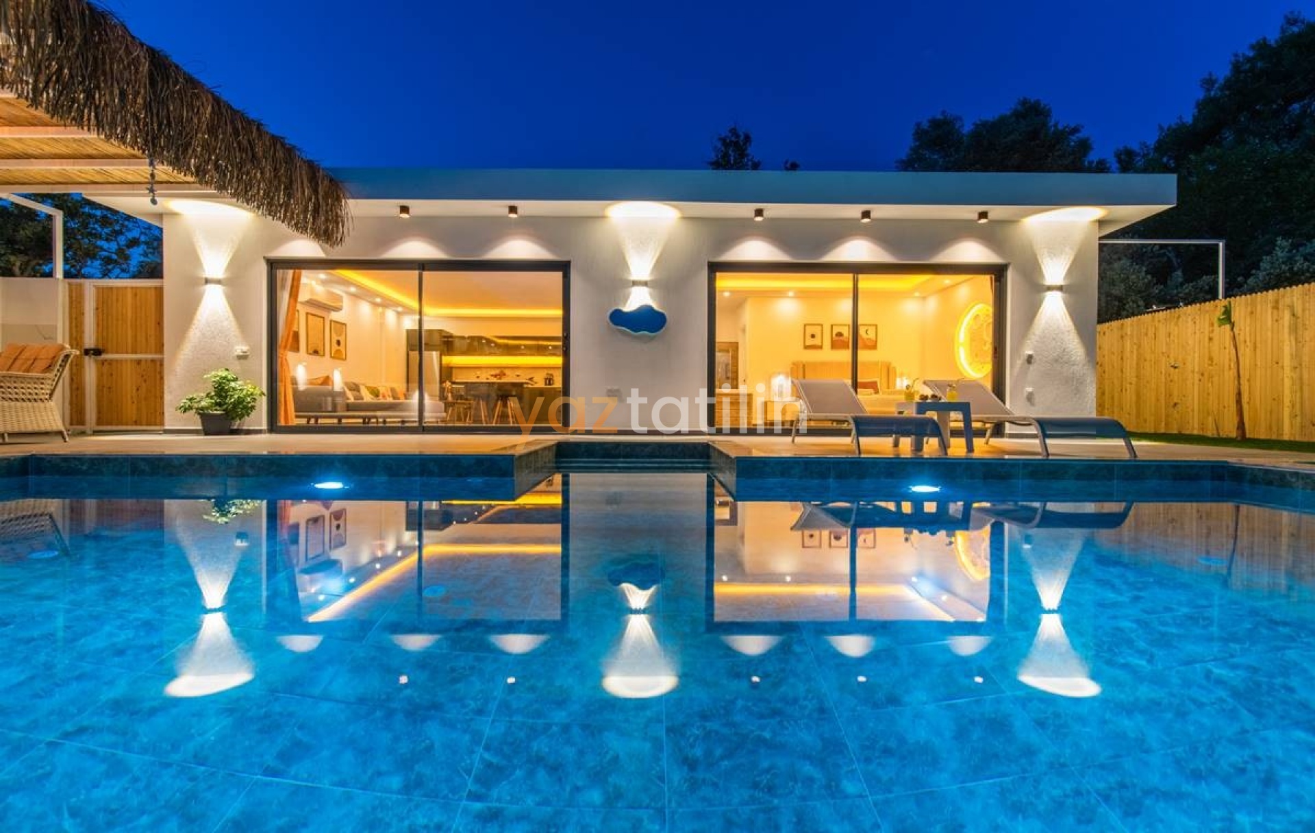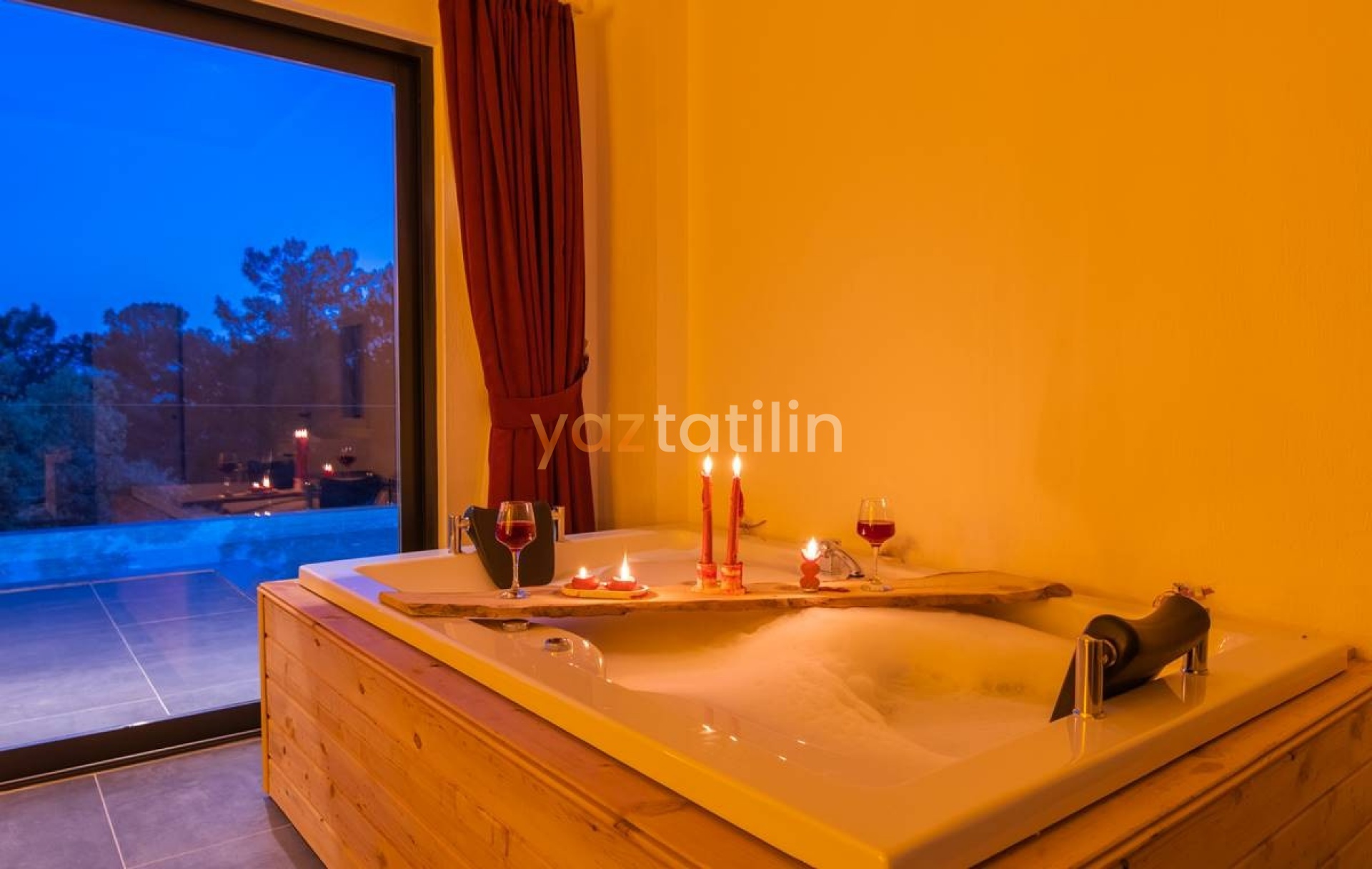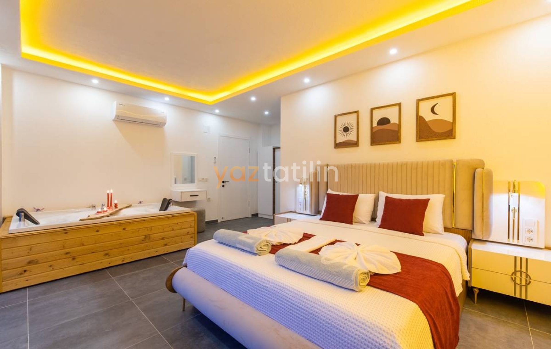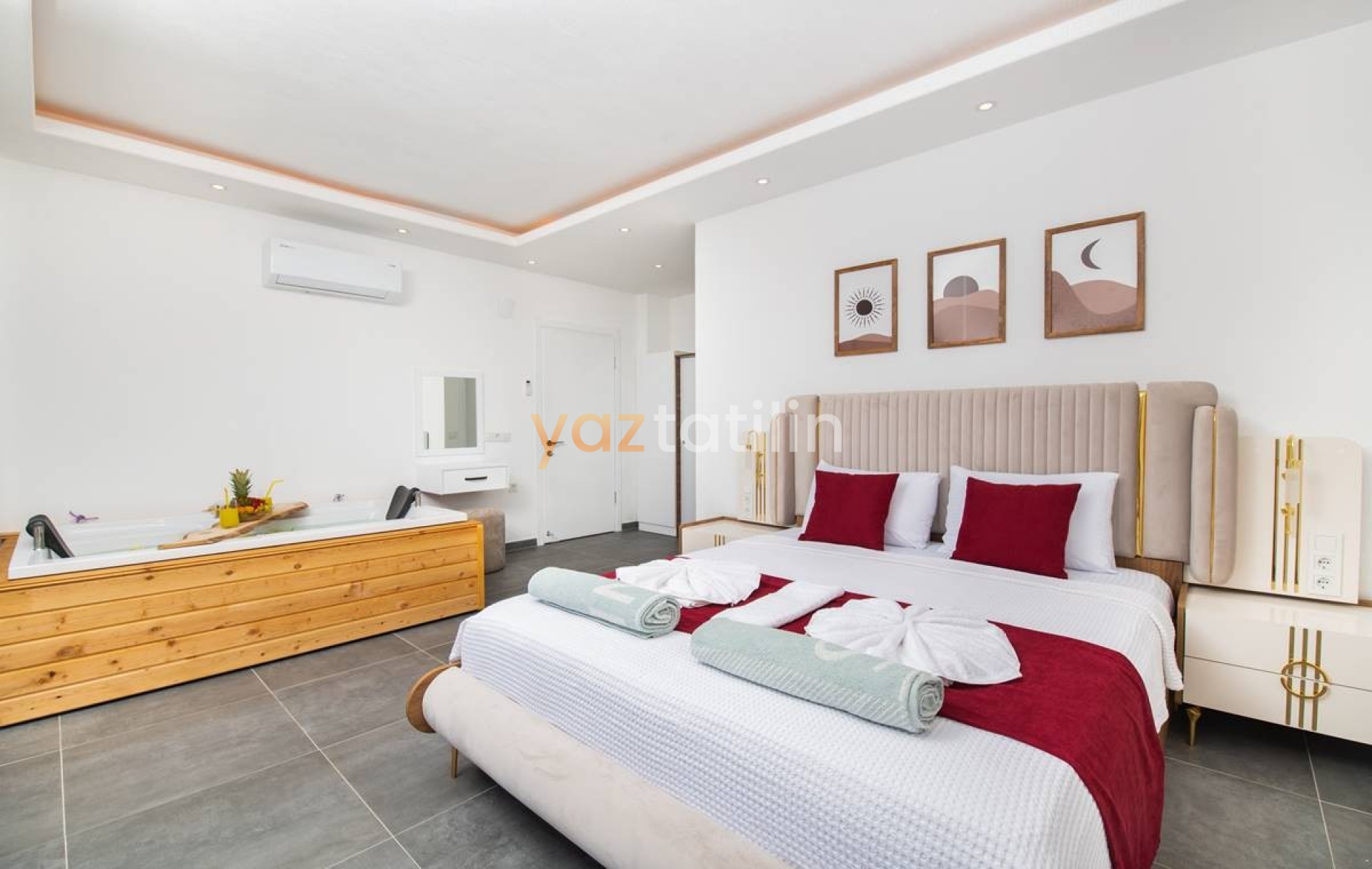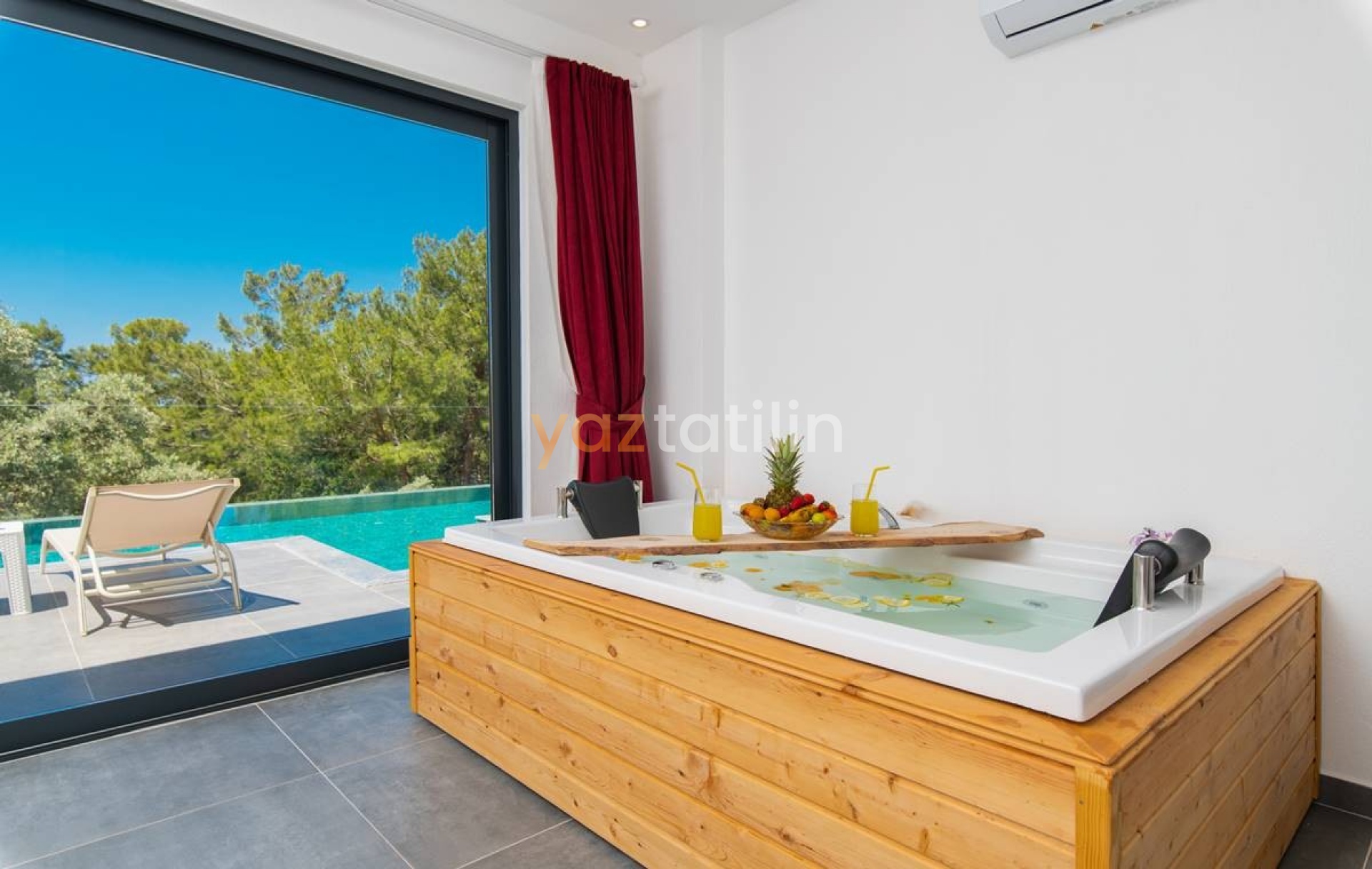 Villa Littabal, Kalkan'ın Üzümlü mevkiinde yer almaktadır. 1 suit yatak odası ile 2 kişilik kapasite sağlamaktadır. Yatak odasında bulunan jakuzi ile yılın yorgunluğunu atabilir sonsuzluk havuzunda tatilinizin keyfini çıkarabilirsiniz. Doğa ile iç içe konumu sayesinde huzurlu bir tatil geçirme fırsatı sunan balayı villasıdır.
